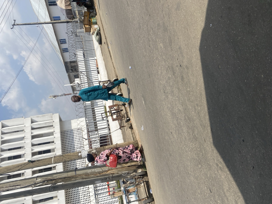 The image depicts a daytime street scene in Ibadan, Nigeria, specifically near Cocoa House