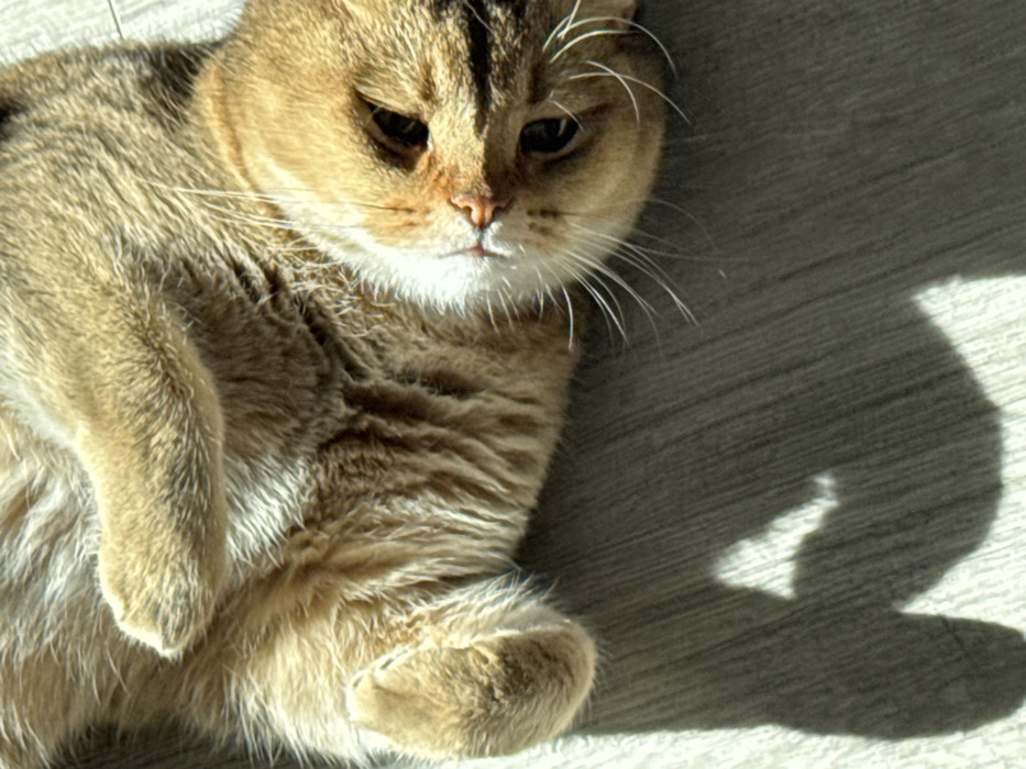 - "A domestic cat, exhibiting golden-brown and ginger fur with tabby markings, is observed lying on its dorsal side on a light-colored wooden or laminate floor" by FM-hin5S2, licensed under CC BY 4.0