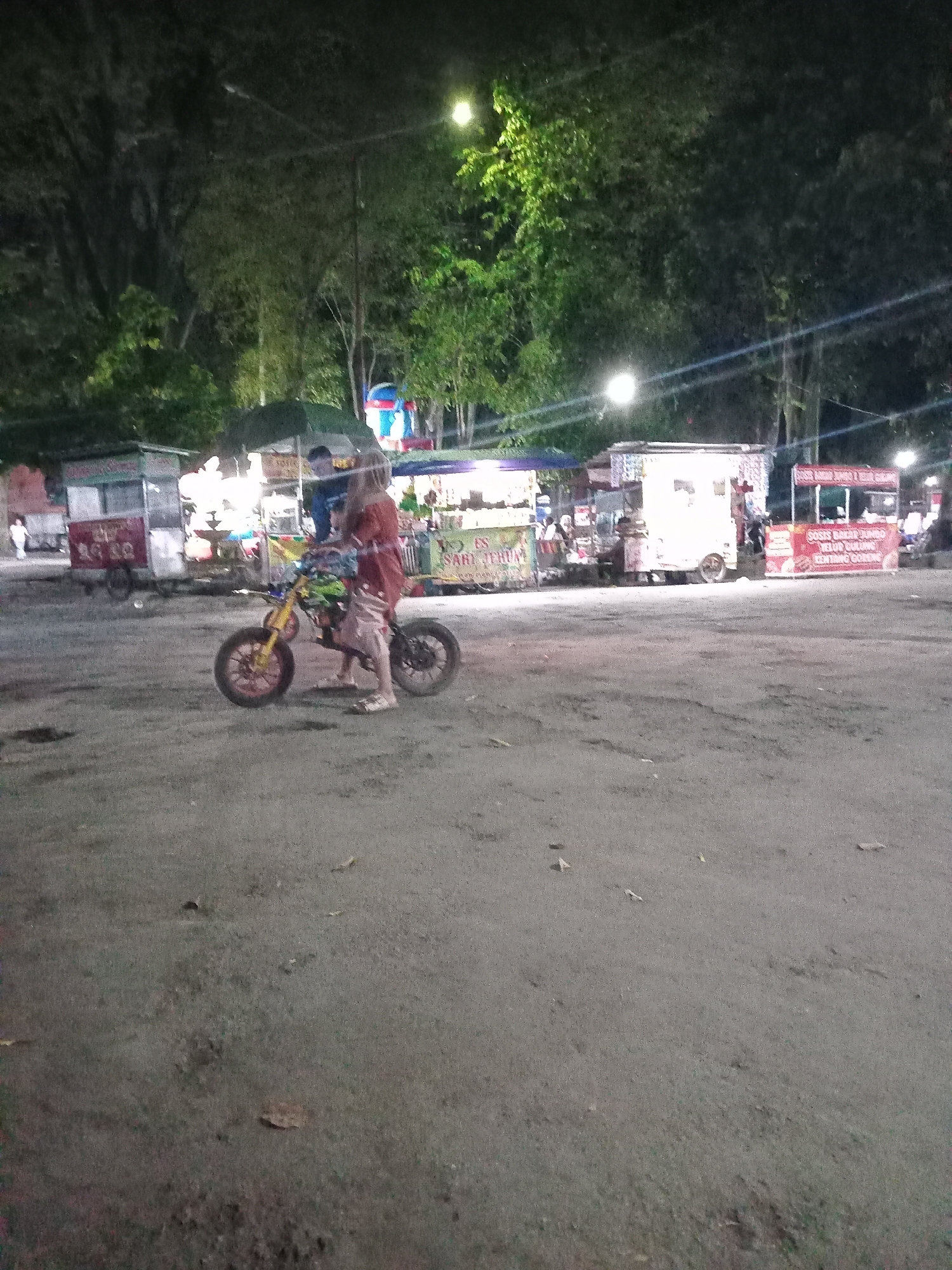 - "The image depicts an outdoor night scene in Nganjuk, Indonesia, likely within a public park or market area, illuminated by artificial lights" by FM-ZmuuT2, licensed under CC BY 4.0