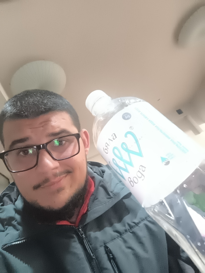 - "A selfie-style image, taken indoors in Panichishte, Bulgaria, depicts a male subject holding a clear plastic water bottle" by FM-EkMCu1, licensed under CC BY 4.0