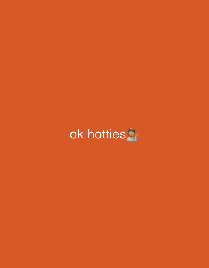 An orange background displays the text "ok hotties" in white, with a waving hand emoji with a light skin tone following the text