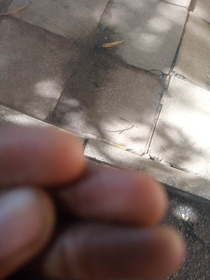The image displays a ground-level, close-up view of an outdoor paved surface in the city of Unknown, Unknown