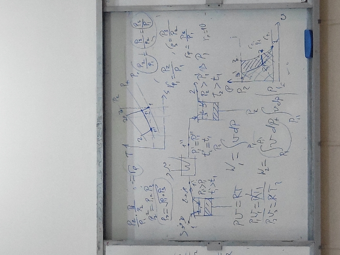 - "A white whiteboard, framed with light gray metal, is covered extensively with handwritten thermodynamic equations, diagrams, and schematics in blue marker ink" by FM-uC8RX2, licensed under CC BY 4.0