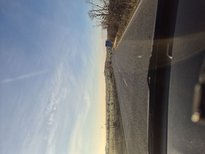 - "The image displays a first-person perspective from the interior of a vehicle, looking forward through the windshield onto a two-lane asphalt road in the vicinity of Kostinbrod, Bulgaria" by FM-QtvDa2, licensed under CC BY 4.0