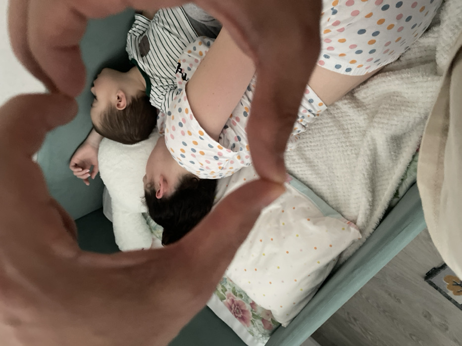 - "The image depicts an indoor scene in Izhevsk, Russia, showing an adult female and a young child resting on a bed, viewed through a heart shape formed by hands in the foreground" by FM-DXeJt2, licensed under CC BY 4.0