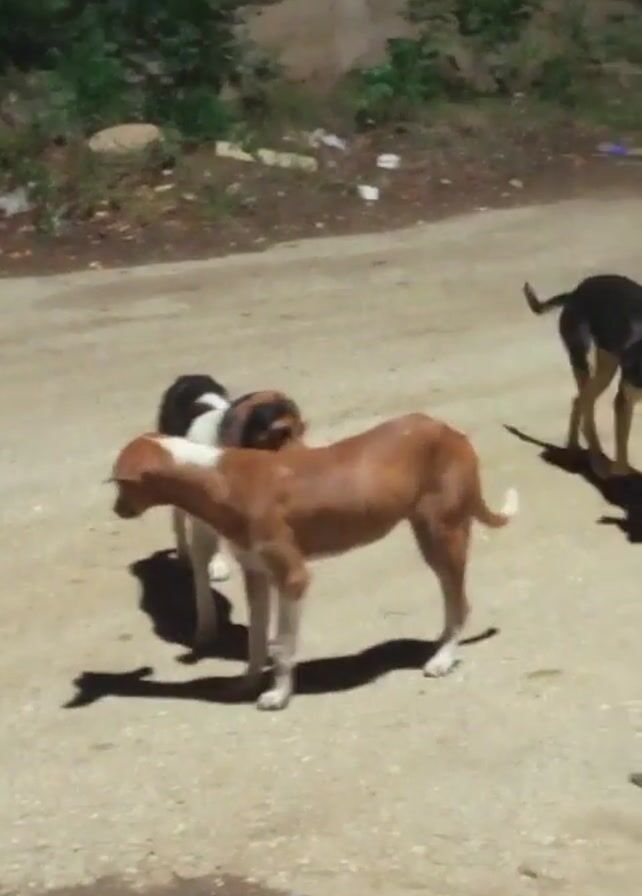 - "three stray dogs on an asphalt road, illuminated by dim artificial light at night" by FM-LkkdS2, licensed under CC BY 4.0