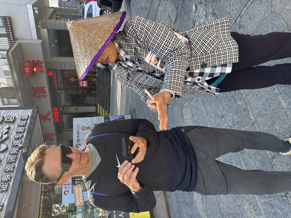- "Two individuals are engaged in an interaction on a stone-paved sidewalk in front of the Nanda Hotel (南大饭店) in Guilin, China" by FM-7eaFY2, licensed under CC BY 4.0