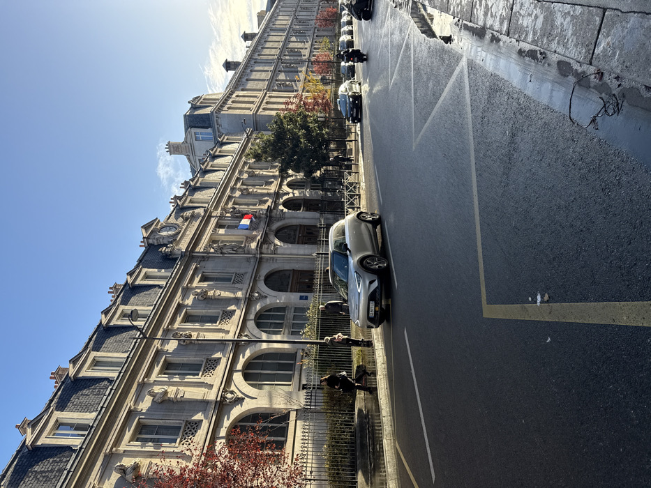 The image depicts a street scene in Paris, France, specifically at Lycée Jean-Baptiste Say, located at 11 bis Rue d'Auteuil, 75016 Paris