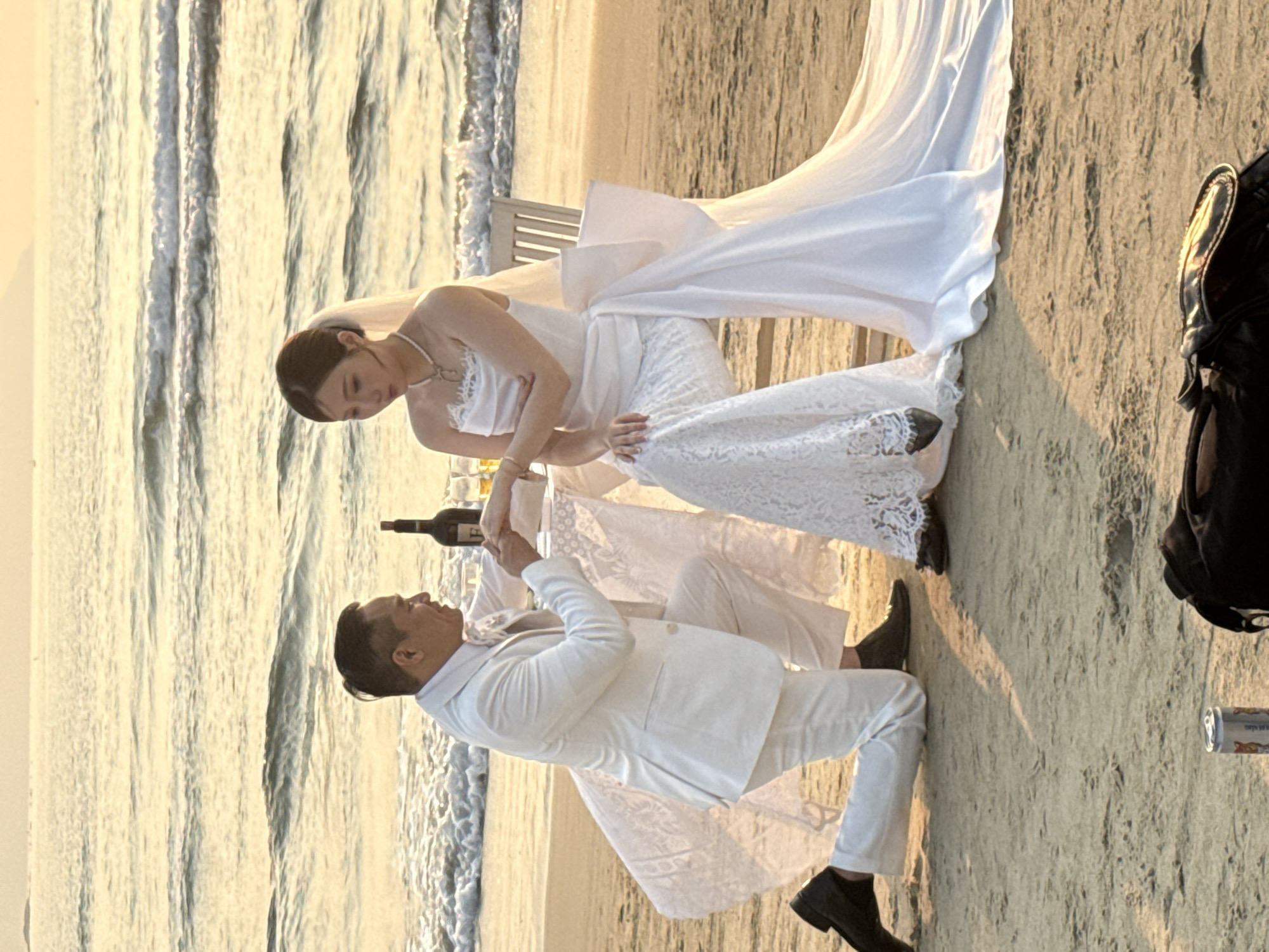 - "A wedding photo shows a bride and groom on a beach" by FM-5San93, licensed under CC BY 4.0