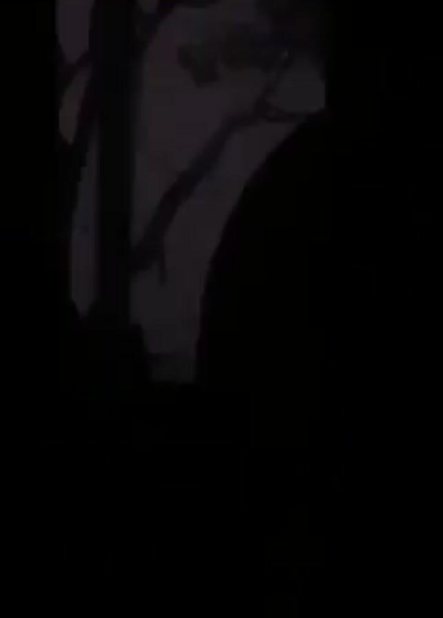 The video is primarily dark with a small, grainy square of light showing the silhouette of tree branches against a cloudy sky