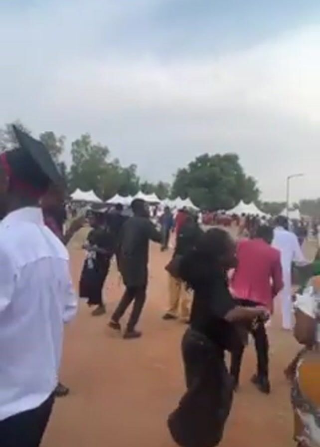 A medium shot captures a lively outdoor celebration
