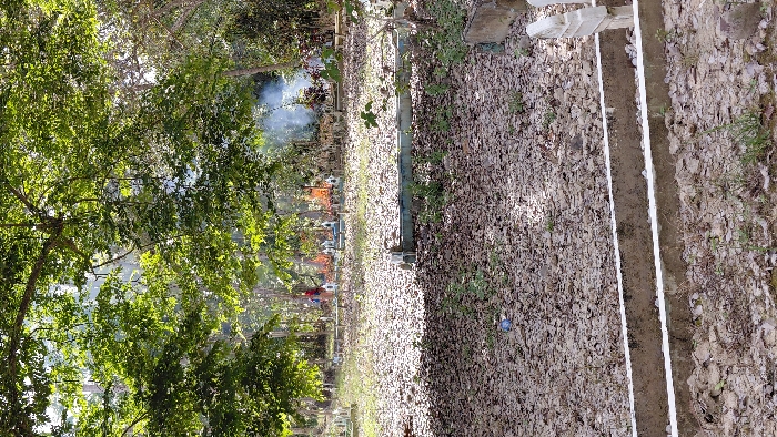 The image displays an outdoor scene within a cemetery or burial ground in Tanjongdama, Indonesia
