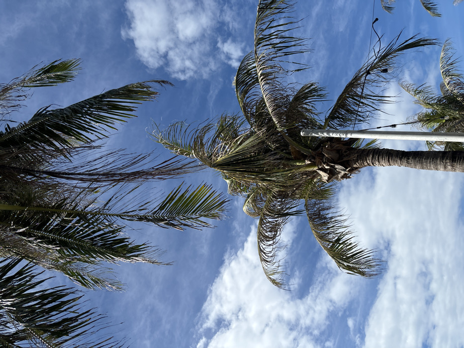 - "The image displays an upward-looking perspective of multiple palm trees under a bright blue sky with scattered white clouds, located in the city of Hengchun, Taiwan" by FM-bmo3E3, licensed under CC BY 4.0