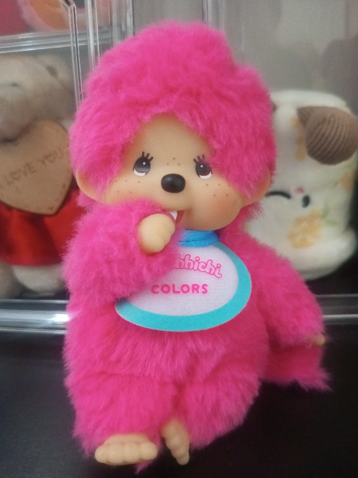 - "A pink Monchhichi doll stands centered" by FM-p7z193, licensed under CC BY 4.0