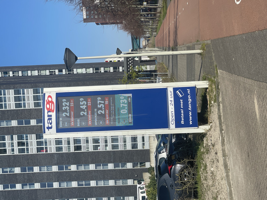 - "The image displays a Tango gas station price display sign on a clear, sunny day in The Hague, Netherlands, specifically near the HS Kwartier area" by FM-MXCJ03, licensed under CC BY 4.0