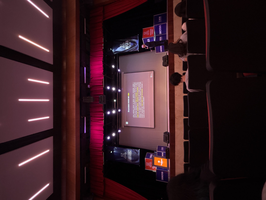 The image depicts an auditorium or lecture hall in Chablekal, Mexico