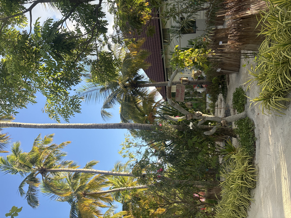 - "The image depicts an outdoor tropical garden scene on Himmafushi, Maldives, under a clear blue sky with bright sunlight casting distinct shadows" by FM-DE9ba2, licensed under CC BY 4.0