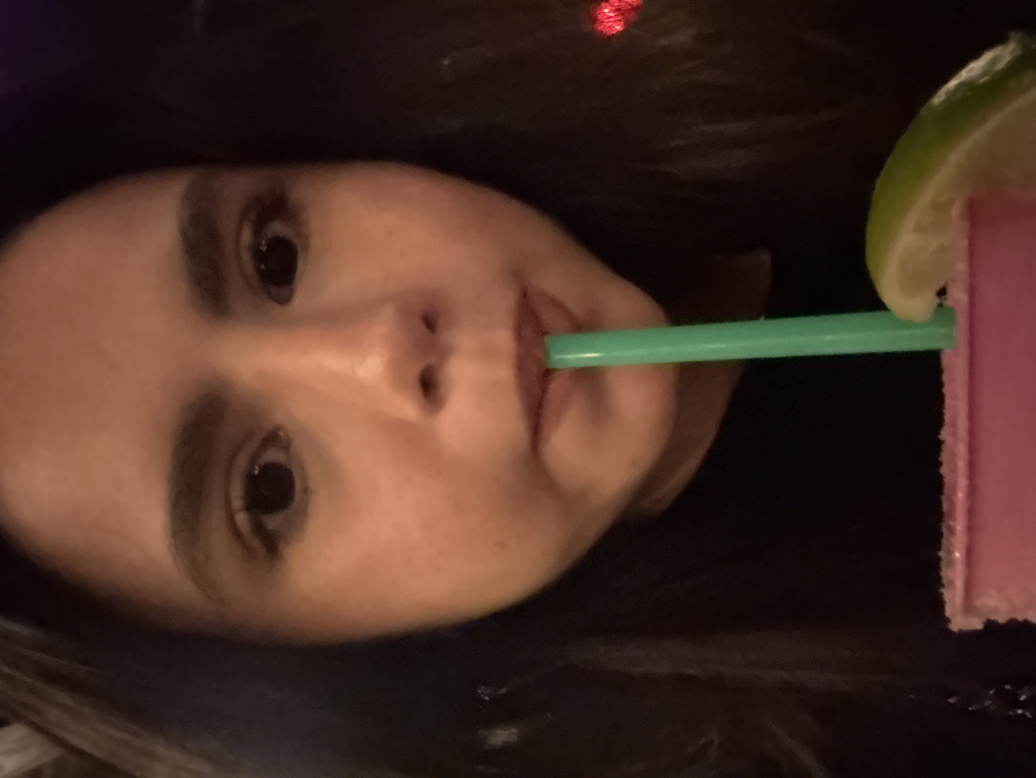 - "A woman with dark hair and light skin drinks from a pink beverage with a green straw and a lime wedge on the rim" by FM-S0Unw2, licensed under CC BY 4.0