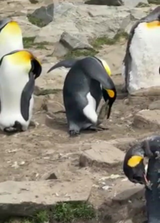 - "small group of King Penguins standing on a rocky, dirt ground interspersed with small patches of green plants" by FM-x6Qwo1, licensed under CC BY 4.0