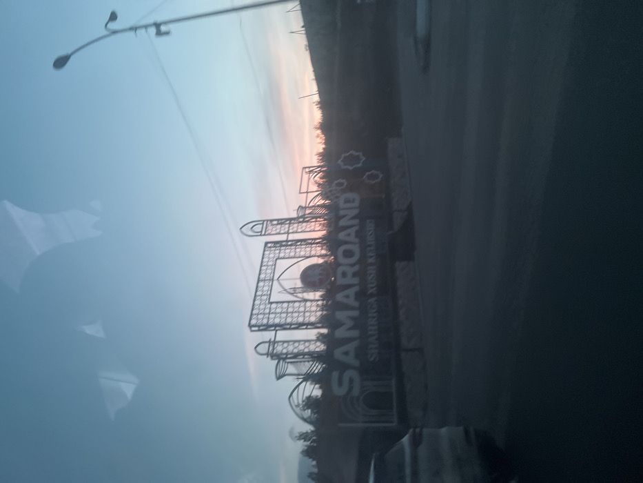 - "The image depicts a roadside scene at the entrance to Samarkand City, Uzbekistan, captured during twilight hours with a sky gradient from light blue to pale orange near the horizon" by FM-Keu5Y2, licensed under CC BY 4.0