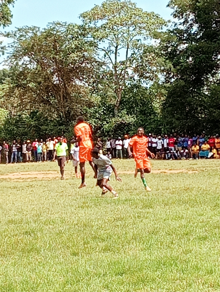 The image depicts an outdoor football (soccer) match occurring in Ngenyilel ward, Kenya