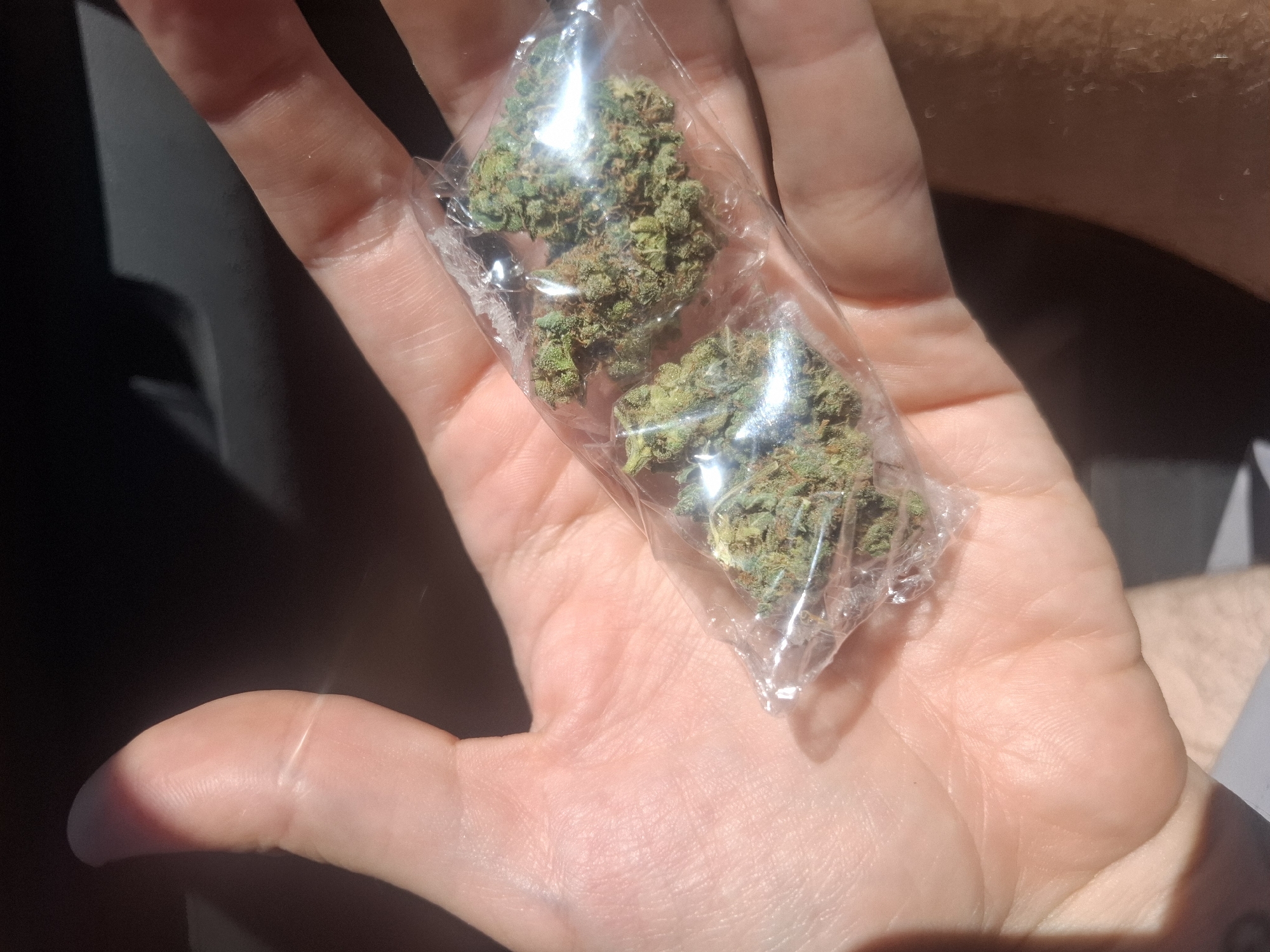 - "A close-up photograph taken in the city of Sarandí, Argentina, shows a human hand holding a small, clear plastic bag containing dried cannabis buds" by FM-kzA8r2, licensed under CC BY 4.0