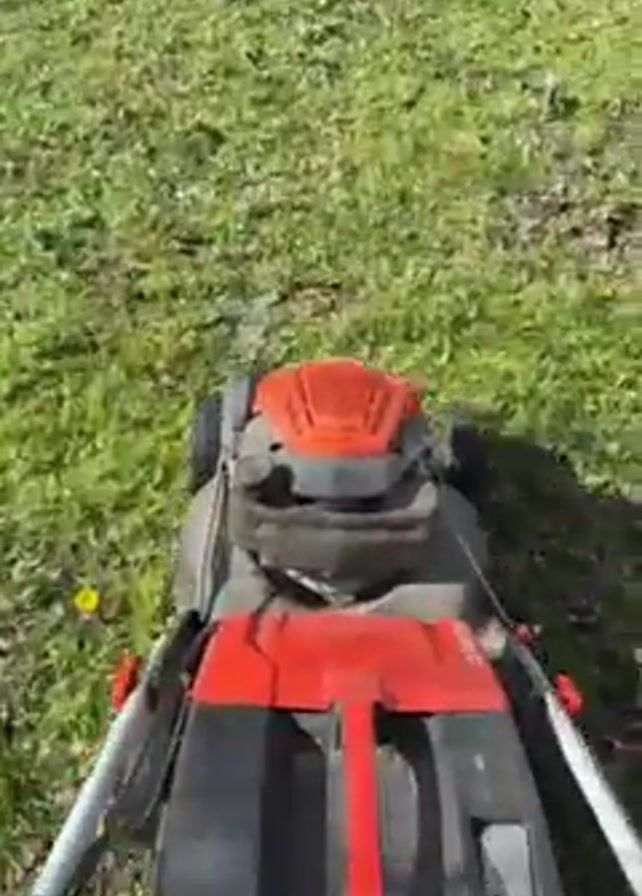 lawnmower being used to cut grass