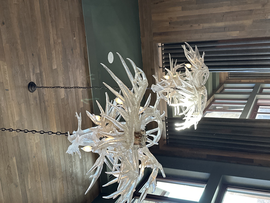 - "Two antler chandeliers hang from the ceiling, connected by chains" by FM-2Bjlr1, licensed under CC BY 4.0