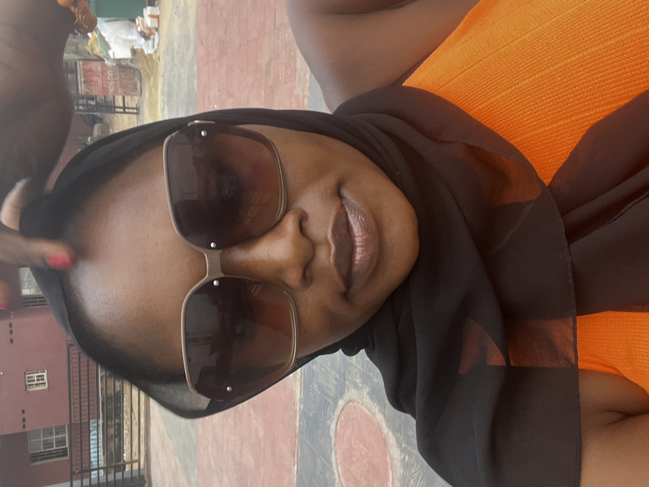 A close-up selfie captures a person with a dark complexion, positioned outdoors in Ikeja, Nigeria