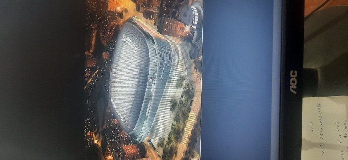 - "A tilted photograph shows an aerial view of the Santiago Bernabéu Stadium at night, displayed on an AOC monitor" by FM-0zE9q2, licensed under CC BY 4.0