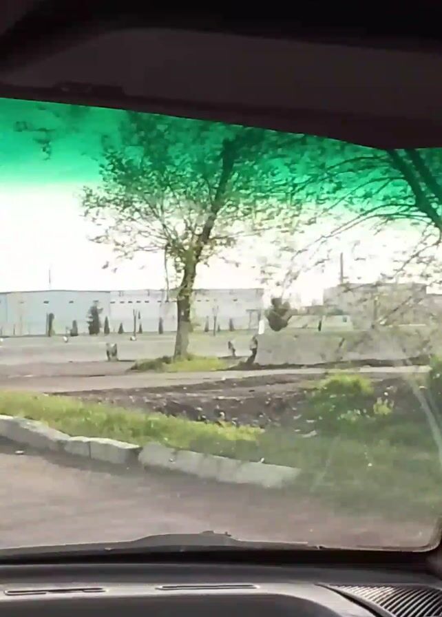 The video is filmed from inside a moving vehicle, presumably a car, focusing on the view through the windshield