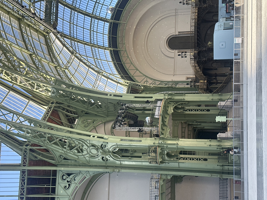 This image depicts the interior of the Grand Palais in Paris, France, specifically within its main hall (the Nef)