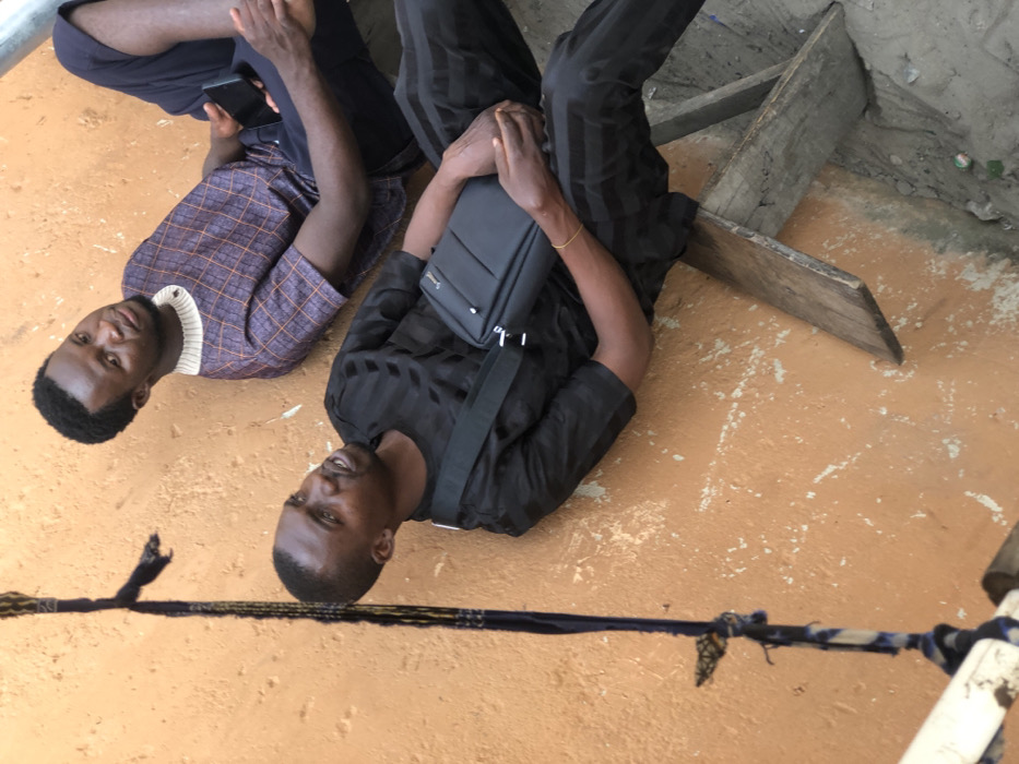 - "Two adult males are depicted seated outdoors, leaning against a weathered orange-colored wall, in an unidentifiable location within Aiyetoto-Asogun, Nigeria" by FM-Ad55i2, licensed under CC BY 4.0