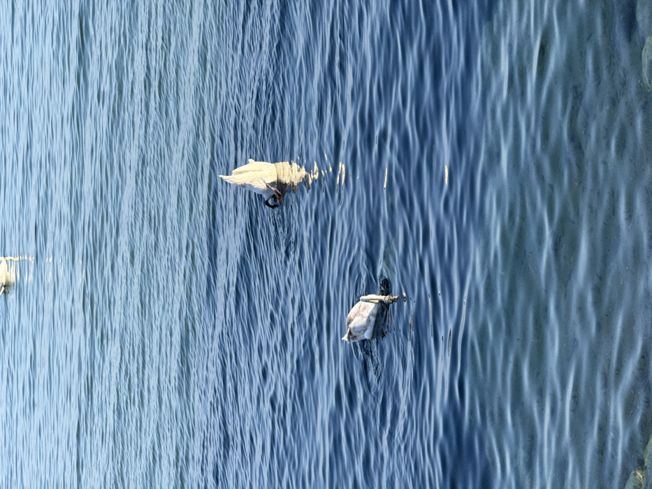 - "The image displays a scene of three swans in the coastal waters of Varna, Bulgaria" by FM-Oel3j2, licensed under CC BY 4.0