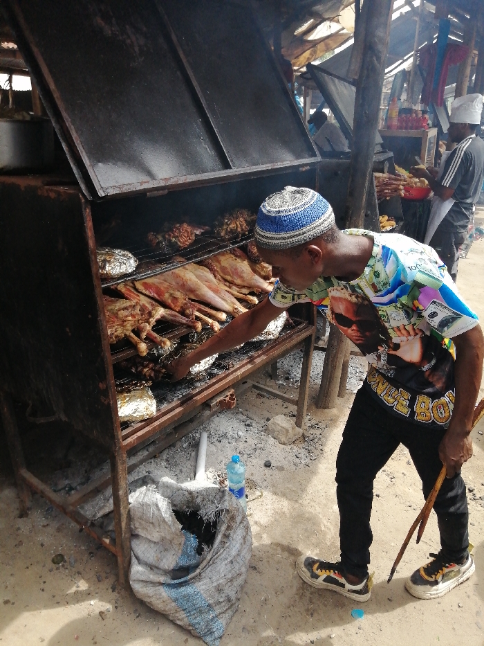 This image captures an outdoor food preparation scene in Machinjioni, Tanzania