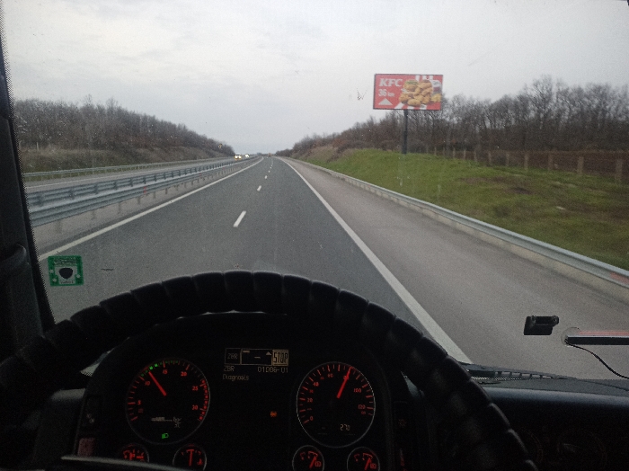 - "The image presents a first-person perspective from the driver's seat of a commercial vehicle, likely a truck, traveling on a multi-lane highway in the vicinity of Malko Tranovo, Bulgaria" by FM-aLqja2, licensed under CC BY 4.0