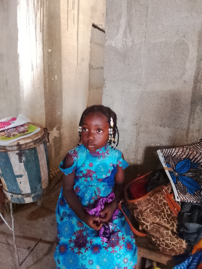 An image taken indoors in Akwanga, Nigeria, shows a young Black child seated