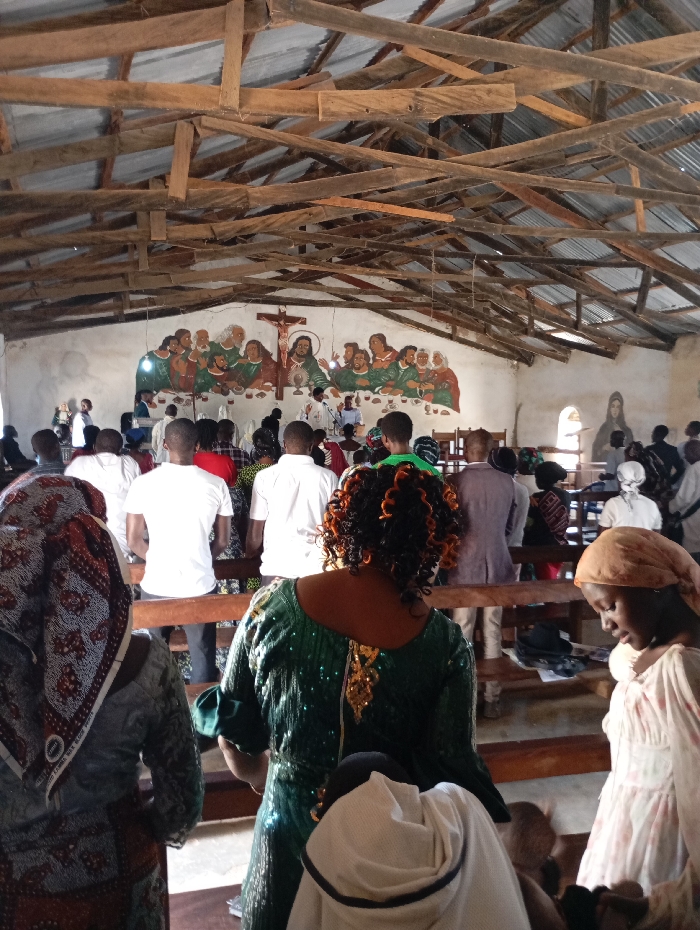 This image captures the interior of a church or religious gathering space in Pankshin, Nigeria, during a service