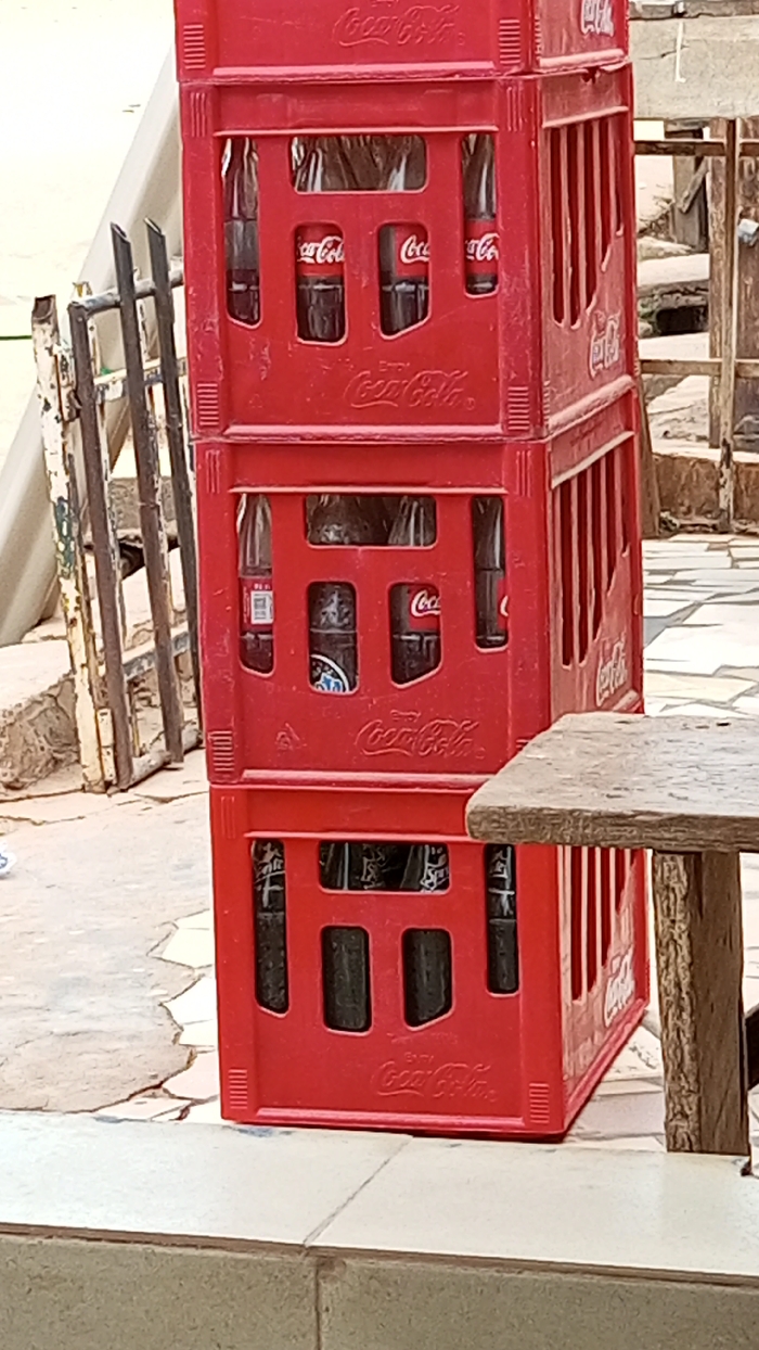 - "The scene depicts a stack of three red plastic Coca-Cola beverage crates positioned on a light-colored tiled surface in Sabon Tasha, Nigeria" by FM-qi6h23, licensed under CC BY 4.0
