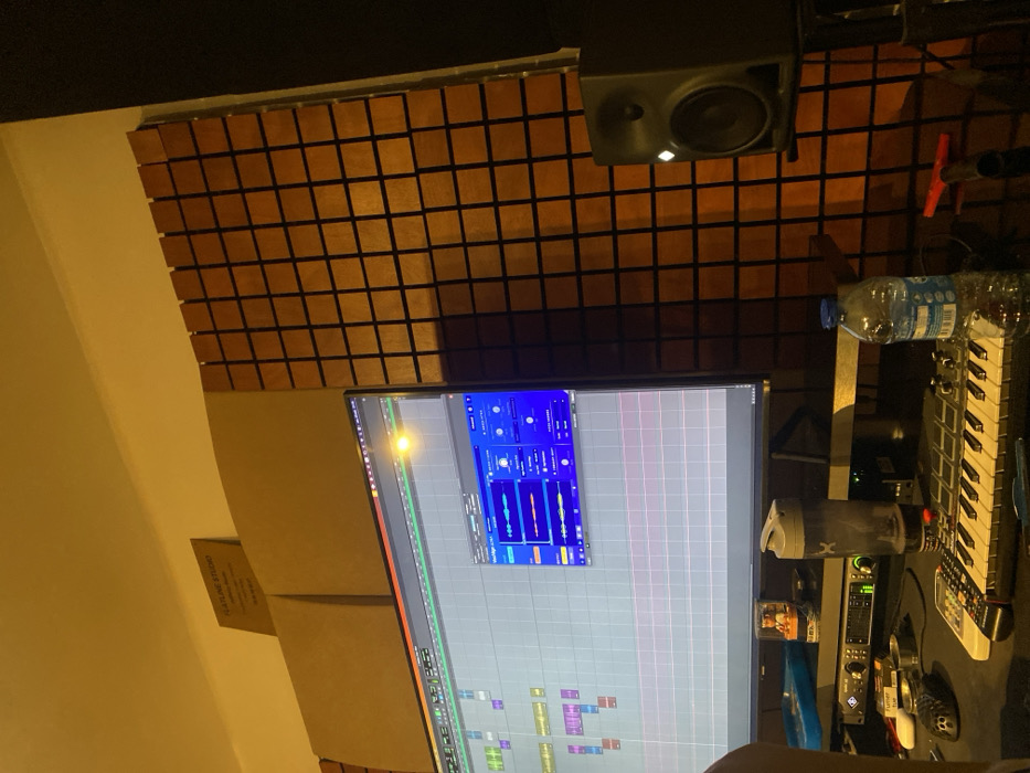 - "The image depicts the interior of a music recording studio control room, identified by a sign as "FLATLINE STUDIO" in the city of Unknown, Unknown" by FM-jco4u2, licensed under CC BY 4.0