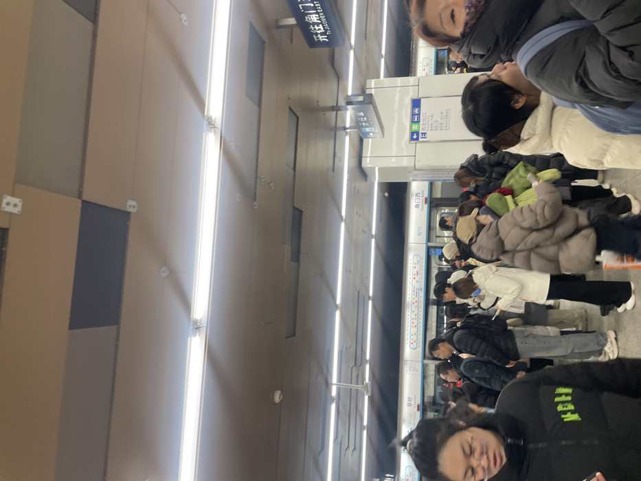 - "The image displays a moderately crowded underground subway platform, identified by an overhead sign displaying "开往角门东 (To Jiaomen East)" and "TO JIAOMEN EAST"" by FM-k4z3A2, licensed under CC BY 4.0