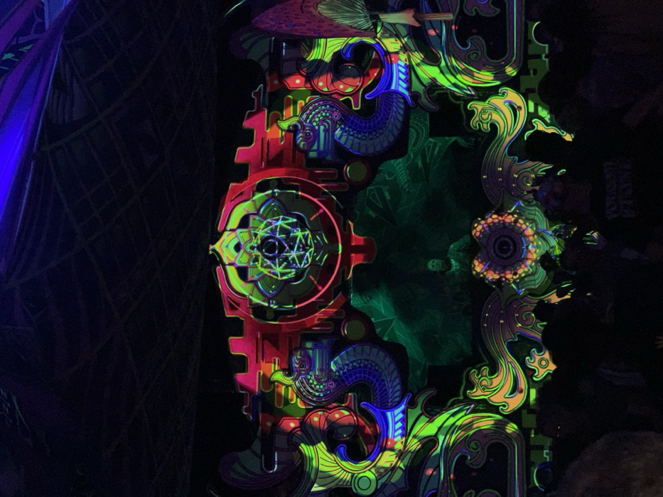 - "vertical panel featuring psychedelic art under UV light" by FM-PvsOA2, licensed under CC BY 4.0