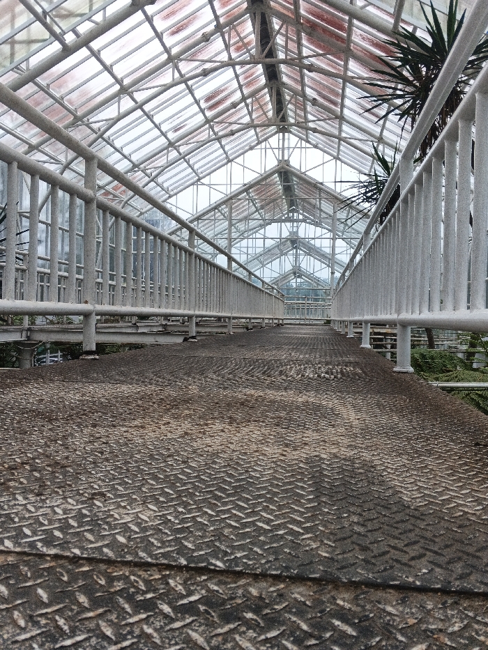- "A low-angle shot captures a walkway within a greenhouse" by FM-UoBXu2, licensed under CC BY 4.0