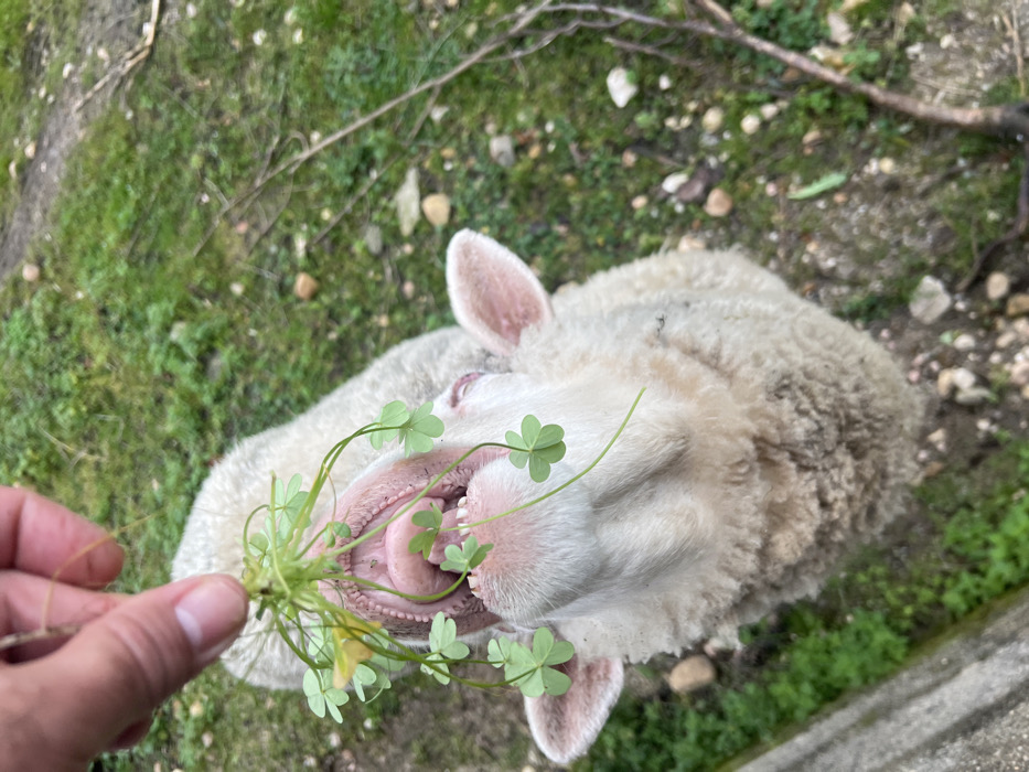 - "A sheep is being hand-fed a bunch of clover" by FM-k1rMm1, licensed under CC BY 4.0