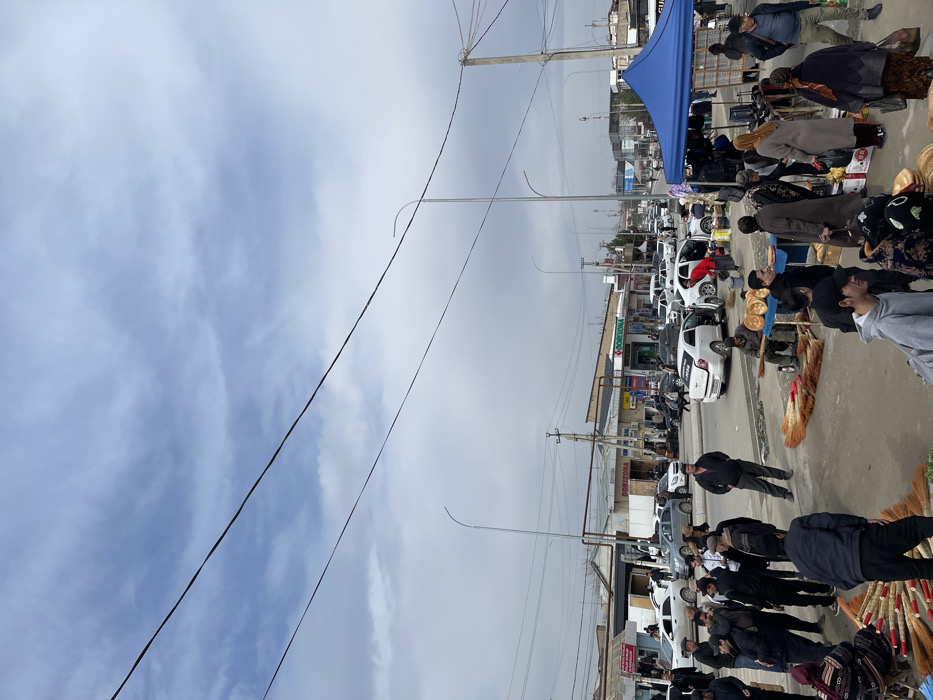 - "The image captures a wide-angle view of a busy outdoor market and street scene in Yangirabаt, Uzbekistan, under an overcast sky" by FM-6QPhj2, licensed under CC BY 4.0