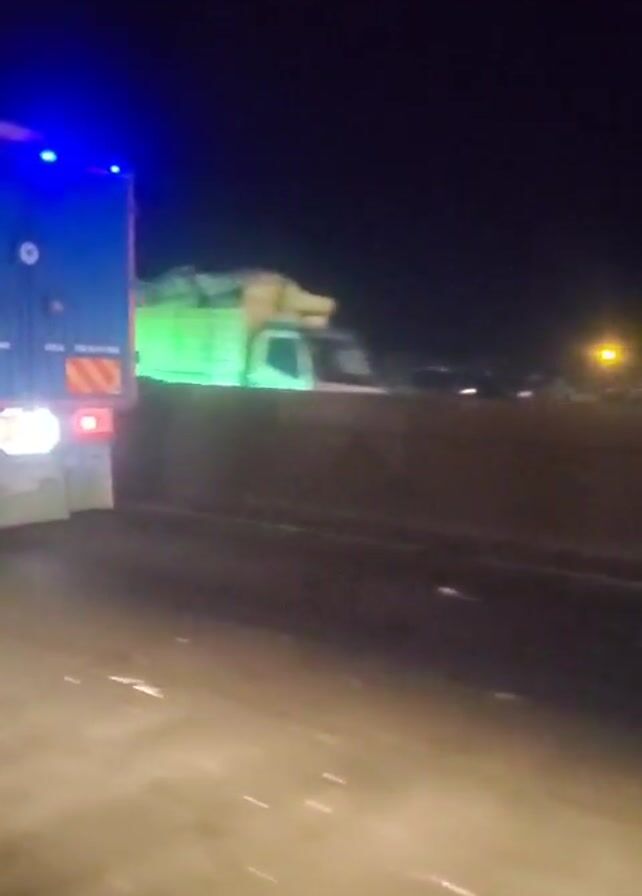 The video, recorded at night, appears to be taken near a roadside, possibly a highway or freeway