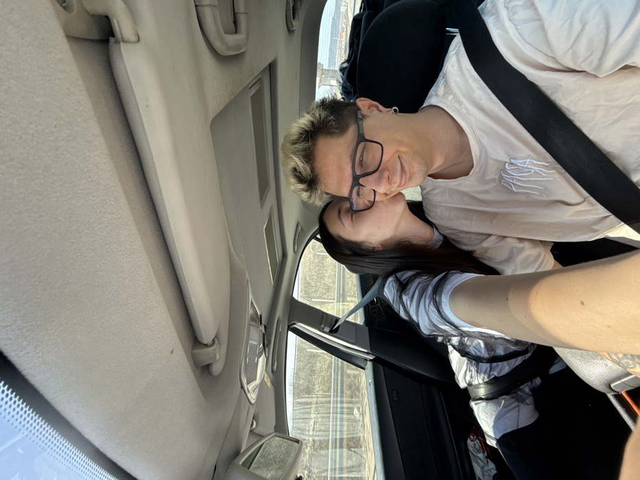 The image captures two individuals inside a vehicle during daylight, identified as being in Hrabarsko, Bulgaria