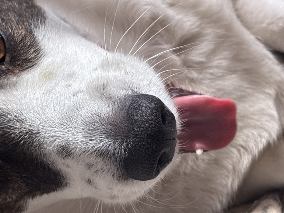 - "The image displays a close-up, partial view of a dog's face, primarily focusing on its muzzle, nose, and open mouth" by FM-a2gYy1, licensed under CC BY 4.0