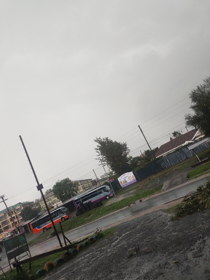 The image captures an outdoor scene in Ngong ward, Kenya, under a predominantly grey, overcast sky