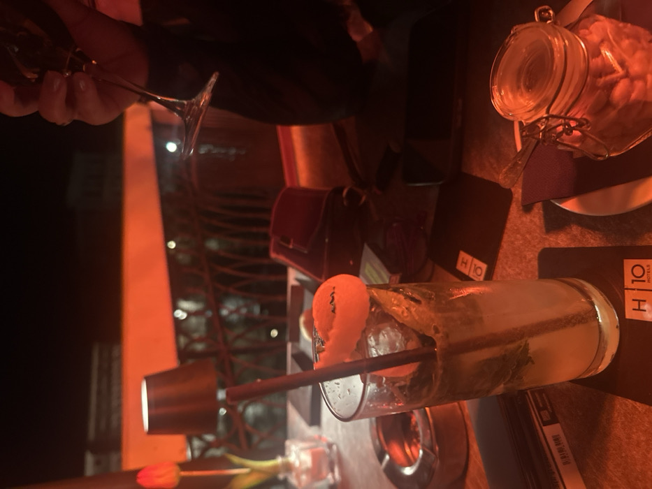 - "The image depicts a nighttime scene on an outdoor terrace or rooftop, specifically identified by the "H10 Hotels" branding on a drink coaster, likely at the H10 Palazzo Canova Hotel in Venice, Italy" by FM-us8SV2, licensed under CC BY 4.0
